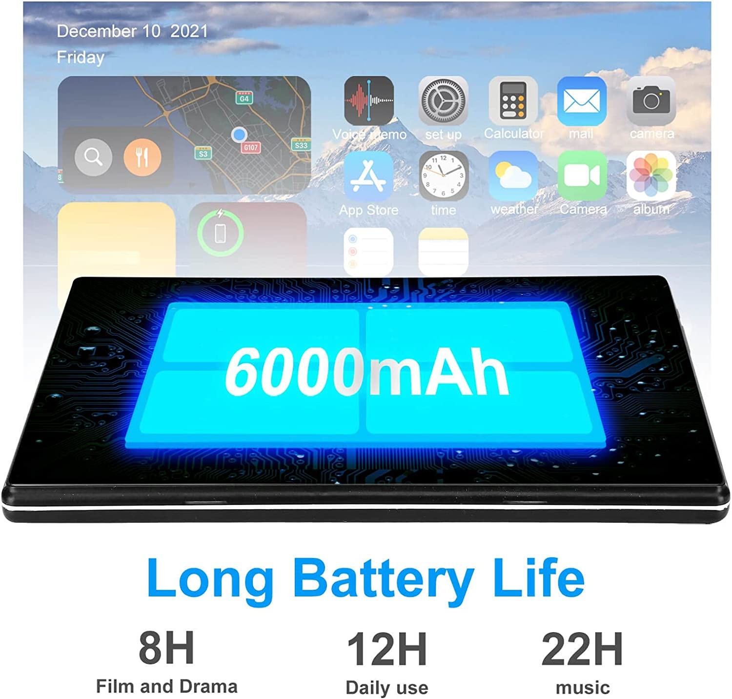【Long Lasting Battery】10" Tablet PC Equipped with 6000mAh rechargeable battery for over 8 hours of mixed use. Enjoy reading, listening to music, watching movies, playing games, video calling or surfing the internet even when you travel.